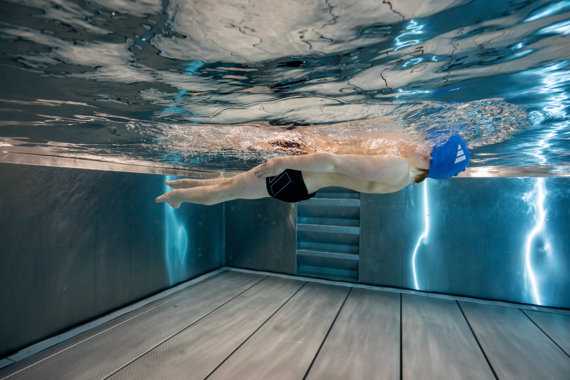 Abstoß, um in Rückenlage mit seitlich angelegten Armen einige Meter zu